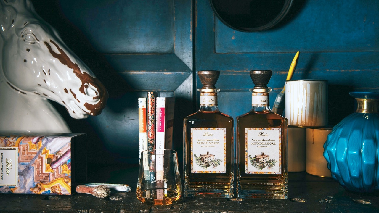 La Linea Castello di Monteu Roero è, infatti, legata all’arte e alla mitologia e dedicata all’omonimo maniero del X secolo ora di proprietà della famiglia Berta. Comprende la Grappa Invecchiata Monte Acuto, un distillato nato dalla selezione delle migliori vinacce di Barbera, Arneis e Nebbiolo, un omaggio al territorio del Roero che proprio così veniva anticamente chiamato e il Distillato d’Uva Mito delle Ore. Quest’ultimo prodotto è dedicato alle dee guardiane dell’Olimpo, figlie di Zeus e protettrici dell’ordine naturale delle stagioni, esprime un profumo complesso, delicato e avvolgente e un sapore ricco di grande armonia e persistenza. Il nome deriva dal ritrovamento del Mito delle Ore in un affresco nei saloni del Castello durante i lavori di restauro.