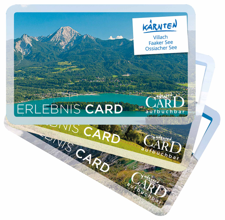 L’Erlebnis CARD offre anche nel 2018 indimenticabili momenti di vacanza davvero per tutti. La CARD è in distribuzione gratis presso tutti gli alloggi convenzionati, ma è possibile integrarla aggiungendovi i servizi della Kärnten Card che garantisce accesso libero a oltre 100 mete turistiche in tutta la Carinzia. La Kärnten Card è valida dal 8 aprile al 26 ottobre per una, due, tre o cinque settimane a seconda della stagione, ad un prezzo a partire da 39,00 Euro per adulti e da 19,00 Euro per i bambini.