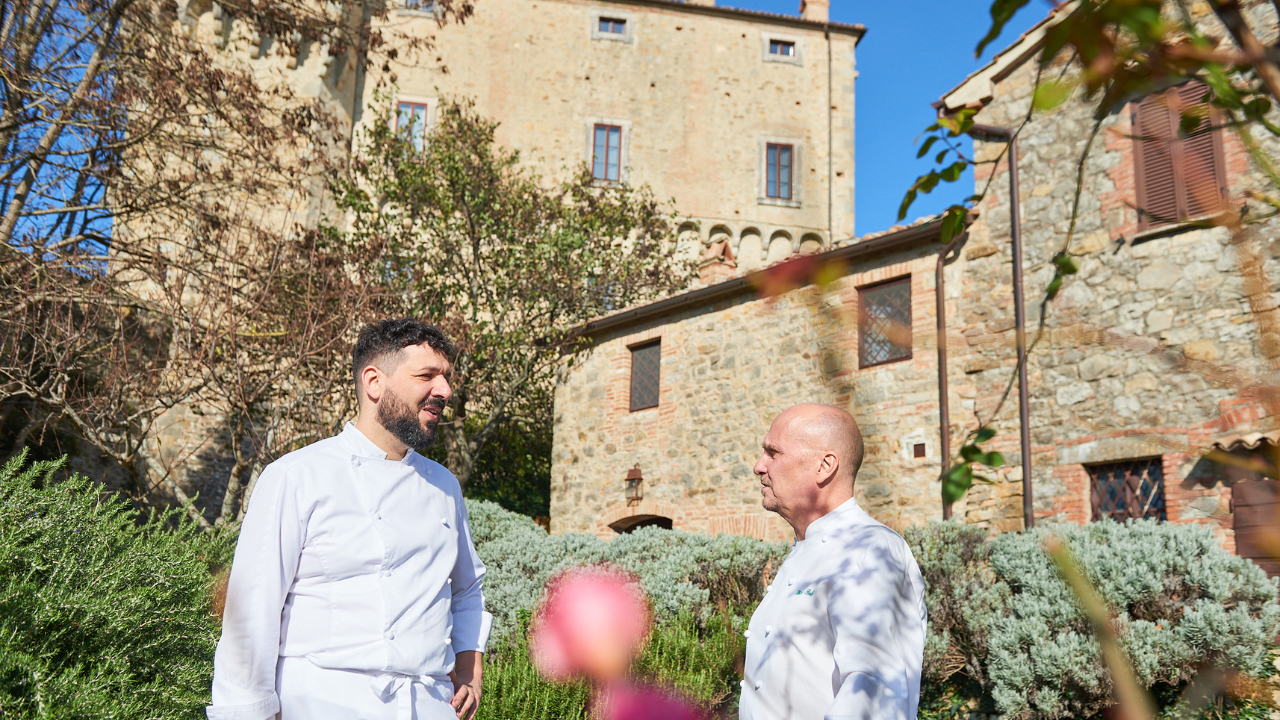Classe ’87, originario di Nola (Napoli) cresce sotto la guida del tristellato chef tedesco (insieme da La Pergola ad Attimi by Heinz Beck sia a Roma che a Milano, infine al Cafè Le Paillotes). Ad occuparsi dei 20 coperti del Castello di Fighine, la Restaurant Manager e Sommelier Marta Baldelli, sua compagna di vita.