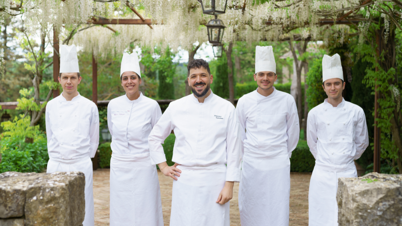 Classe ’87, originario di Nola (Napoli) cresce sotto la guida del tristellato chef tedesco (insieme da La Pergola ad Attimi by Heinz Beck sia a Roma che a Milano, infine al Cafè Le Paillotes). Ad occuparsi dei 20 coperti del Castello di Fighine, la Restaurant Manager e Sommelier Marta Baldelli, sua compagna di vita.