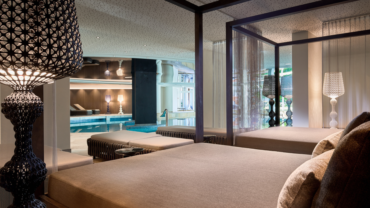 Tra le aree piscina che coinvolgono i sensi in un piacevole viaggio tra profumi di bosco, gorgheggio di ruscelli e aria tersa, la laconium “Wärmstube” che scioglie completamente ogni tensione muscolare , il tepidarium con lettini in pietra riscaldati e le numerose zone relax con letti ad acqua riscaldati che offrono l’occasione perfetta per un intenso riposo, il senso del tempo scompare e rimane solo la quiete del respiro che, finalmente, ha un passo più lento.