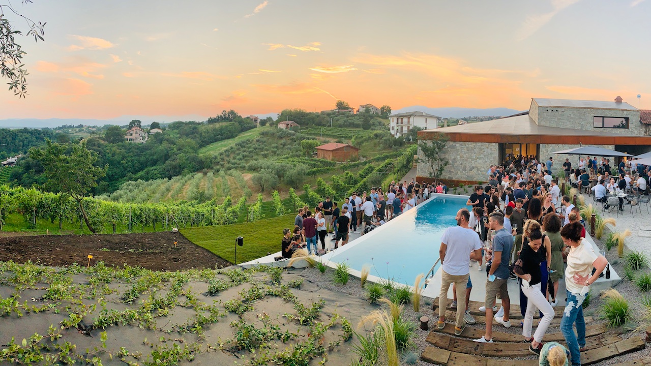 Visitando Al Monte di Livio la prima cosa che colpisce è la struttura architettonica post moderna che si fonde per sintonia con l’ambiente ameno che pare abbracci questa cantina come madre natura fa con le sue creature. Ed è in questo percorso tra antico e moderno che Maria, Gloria e Alberto hanno accolto i 300 ospiti per la presentazione della cantina, terminata in tempi record, causa lockdown.
