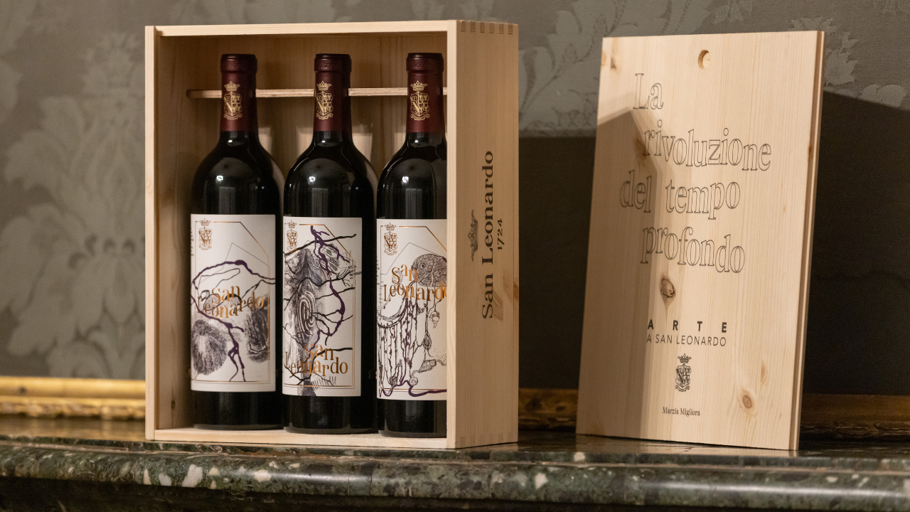 Tre sono le opere consegnate alla famiglia Guerrieri Gonzaga da cui nasce un leporello, un pieghevole esplicativo realizzato in 200 copie da cui sono state estratte le tre etichette che vanno a caratterizzare le 999 bottiglie dell’edizione speciale del San Leonardo 2019. A rendere ancor più magico il racconto c’è la cura e l’amore di Giovanna Amadasi che nei saloni di Palazzo Taverna ha voluto riunire famiglia, personalità e tanti vecchi fedeli amici di questa ambrosia dall’intenso color rosso rubino.