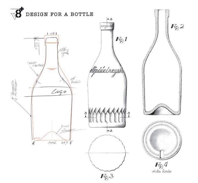 V8+ si presenta, infatti, con un nuovo “abito” che richiama il diamante ed esalta, attraverso una forma ammorbidita, il prezioso contenuto dei vini della “collezione”.