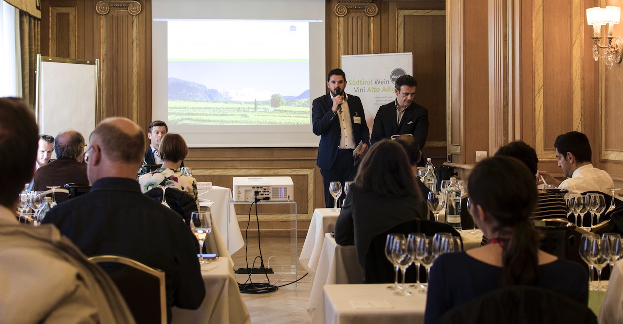 In Alto Adige abbiamo tantissime varietà ad altitudini diverse, e abbiamo dovuto individuare dove piantare la varietà giusta – ha detto Schraffl in apertura del seminario – per il nostro Pinot Bianco è ideale la fascia dei 500-600 metri, poi si va fino agli 800-900 metri del Kerner. In pianura coltiviamo Pinot Grigio e Chardonnay, che hanno bisogno di caldo e terreni calcarei. Quello che ancora mi sorprende è che pur con tutta questa varietà, abbiamo anche una forte identità, tutti i vini del territorio parlano dell’Alto Adige”.