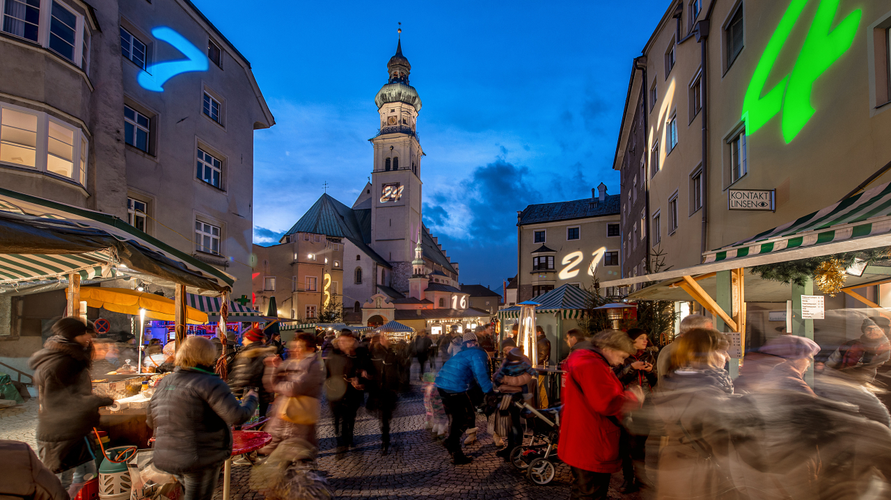 Ad Hall in Tirol il Natale è davvero uno “stile di vita” : tutta la cittadina viene decorata a festa e un calendario dell’Avvento luminoso proietta i giorni che mancano al 24 dicembre sulle pareti dei palazzi della splendida Oberer Stadtplatz. I numeri, dapprima tutti bianchi, uno alla volta, allo scoccare di un nuovo giorno, come in un magico conto alla rovescia, cambiano colore: il 24 dicembre tutti i numeri proiettati sui palazzi, decoreranno e illumineranno la città con tanti colori. La musica natalizia inizia a risuonare per le piccole vie del paese e il dolce profumo di kiachl, caldarroste e zucchero caramellato accompagna, a partire dal 22 novembre 2019, alla scoperta di un piccolo e particolarmente ricercato mercatino di Natale. Decine di bancarelle di artigiani e agricoltori della regione propongono tante idee per i regali di Natale o per addobbare la casa per le feste, realizzate con materiali naturali come legno, lana, paglia o terracotta, ma anche preziosi e delicati come il vetro. Un dolce angolo è dedicato alle golosità tipiche del Natale di questa regione: Kirchtagskrapfen, pan di zenzero, vin brûlé, punch, krapfen, caldarroste, Kiachln con crauti o mirtilli, le tipiche Schnaps o formaggi regionali.