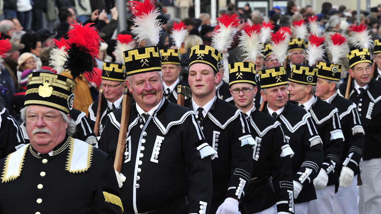 Inoltre, il Natale è anche il periodo dell’anno dove le comunità dei Monti Metalliferi rievocano il duro lavoro nelle miniere e la prosperità di quell’epoca con le parate delle corporazioni dei minatori, accompagnate da musicisti e suonatori d’ottone. Queste manifestazioni in costume radunano migliaia di visitatori ogni anno e si svolgono in quasi tutti i villaggi dei Monti Metalliferi e in particolare a Seiffen il 14 dicembre, a Pobershau e Stollberg il 07 dicembre, a Schneeberg il 08 dicembre e a Schwarzenberg il 14.