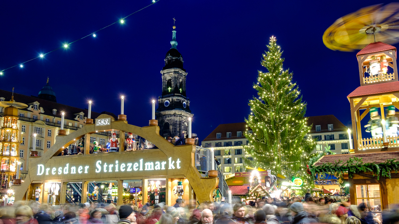 Grande e festoso, lo Striezelmarkt di Dresda è il più antico mercatino di Natale della Germania: si tiene dal 27 novembre al 24 dicembre 2019 nella vecchia piazza del mercato di Dresda (Altmarkt). Con la piramide e il candelabro di legno formato gigante, la pista da pattinaggio, le giostre, le bancarelle di artigianato tipico, le prelibatezze culinarie e molto altro, lo Striezelmarkt è uno dei primi luoghi a Dresda dove andare per fare il pieno di regali e di atmosfera natalizia. Altri sono: il Miglio di Natale, che si estende lungo la Prager Strasse, la più nota via dello shopping, e il romantico Mercato della Frauenkirche, ricco di artigianato autentico e avvolto dalla splendida atmosfera che dona la magnifica Chiesa di Nostra Signora.
