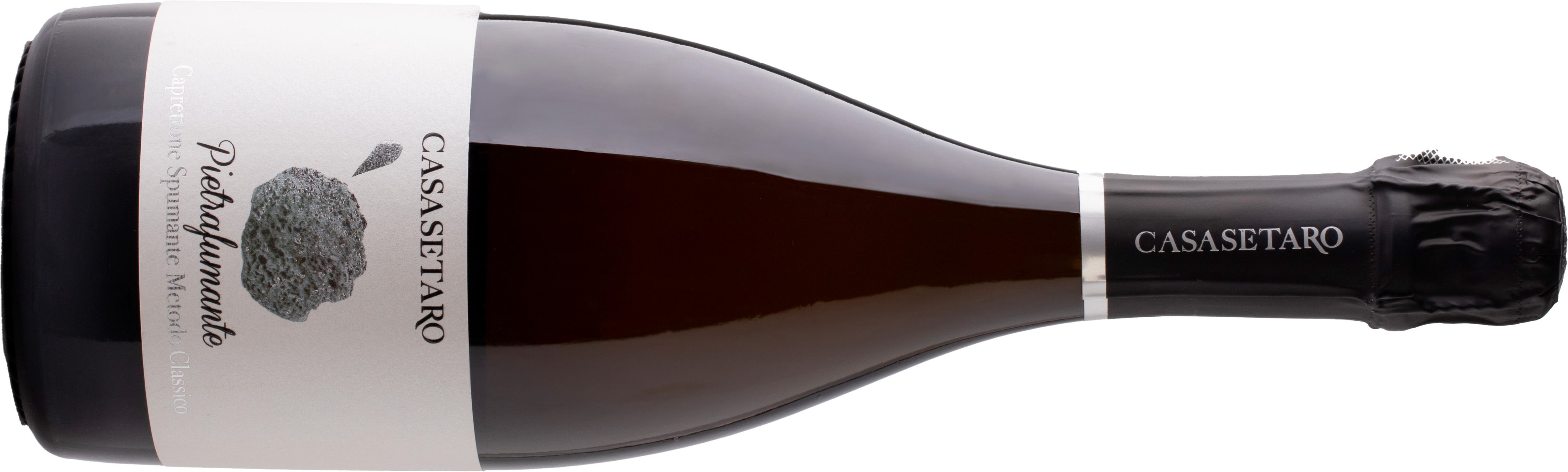 Da uve 100% Caprettone, siamo a Trecase all’interno del Parco Nazionale del Vesuvio. Quattordici ettari vitati su suoli vulcanici coltivati in regime biologico, con sole varietà autoctone a piede franco tra cui il Caprettone. Ed è qui che si trova l’azienda a conduzione familiare di Massimo Setaro. La vinificazione avviene in acciaio con un affinamento 30 mesi sui lieviti. All’olfatto profumi fruttati di ananas, bouquet floreale di fiori bianchi, sentori di lieviti, note speziate di anice stellato, radice di liquirizia e toni di fieno. Al palato si presenta con un’effervescenza fine e cremosa, fresco, elegante dal buon equilibrio e un finale salino con cenni minerali.