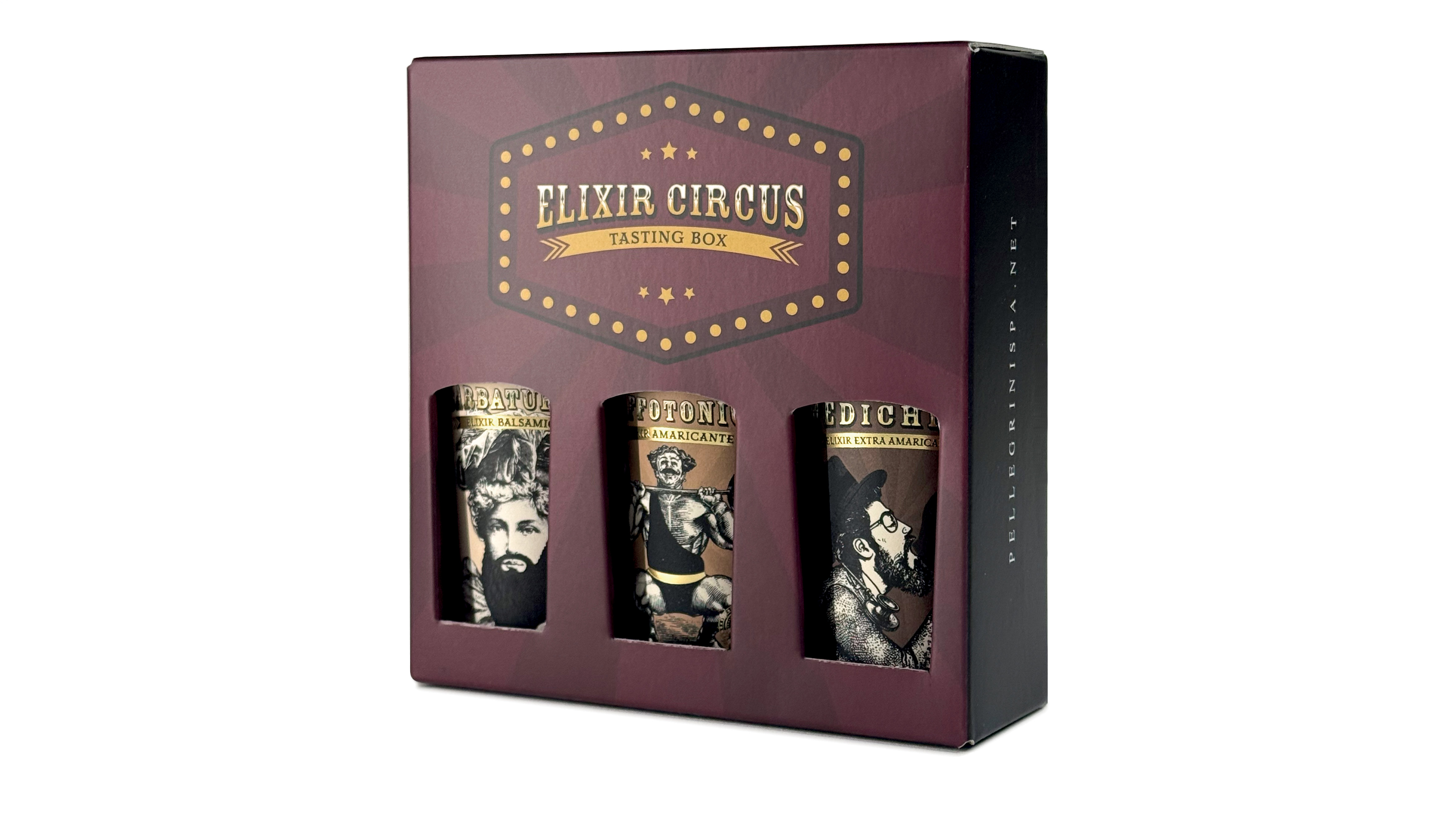 La Tasting Box riunisce tre espressioni iconiche distribuite da Pellegrini S.p.a., ideali per scoprire l’universo degli amari artigianali. Barba-Turico, ispirato ai rimedi ottocenteschi, nasce da 26 botaniche alpine macerate lentamente a freddo, balsamico, erbaceo, autentico; Baffotonico, ottenuto da 26 bacche, radici e fiori, con gradazione alcolica al 33%, deciso, avvolgente, di grande carattere; Medichina® extra-amaricante, realizzato con chinino da cortecce pregiate, arancia amara e note balsamiche, potente, ideale anche in mixology. Prezzo a partire da 32€.