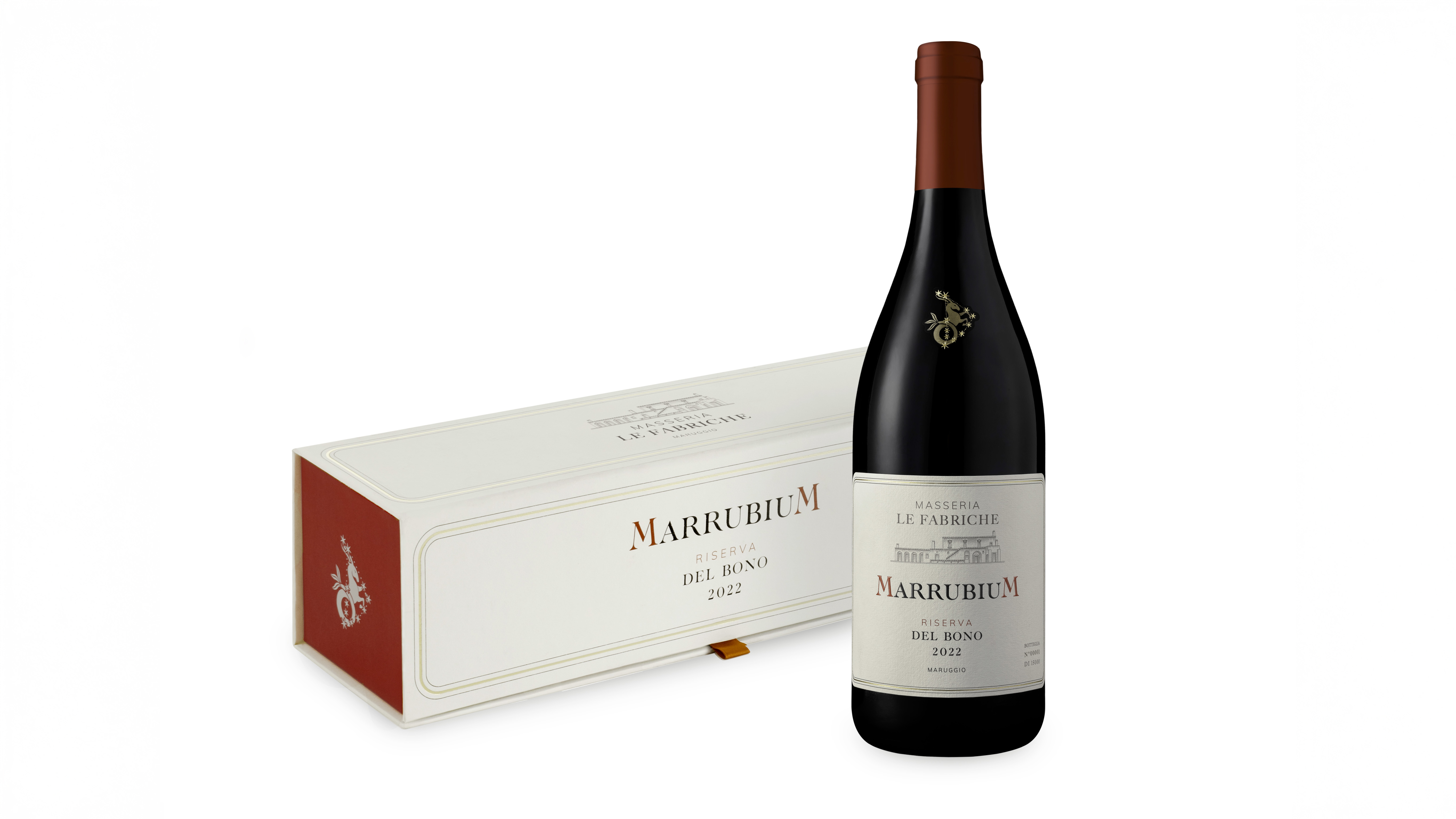 Il MarrubiuM Riserva del Bono 2022 è un Primitivo di Manduria Dop nato da un taglio di Primitivo 85% e Aglianico 15%, vendemmiato a mano nella prima settimana di settembre, in un’annata estremamente siccitosa che ha richiesto selezioni meticolose su ogni grappolo e ogni acino. Il vino affina 12 mesi in botti da 225 litri e altri 12 in bottiglia, per raggiungere struttura, equilibrio e longevità. Nel calice si presenta di un rosso rubino intenso e profondo. Al naso si apre su note eleganti di viola, ibisco e carcadè, seguite da ciliegia, ribes nero e un raffinato tocco di tabacco. Il palato rispecchia fedelmente l’attesa: potenza ed eleganza si intrecciano in un corpo suadente, dinamico, con tannini fitti e saporiti e un finale lungo, succulento, finemente speziato. Un vino già pienamente godibile, ma con un potenziale di evoluzione oltre i 10 anni. Il primo Master of Wine italiano, Gabriele Gorelli, descrive così la 2022: “un primitivo di carattere e compattezza. Vitale e rigoroso allo stesso tempo… tannini fitti e saporiti allungano su un finale avvolgente, succulento ed elegantemente speziato. Già approcciabile oggi, ha l’intensità e la struttura per evolvere a lungo con personalità”.