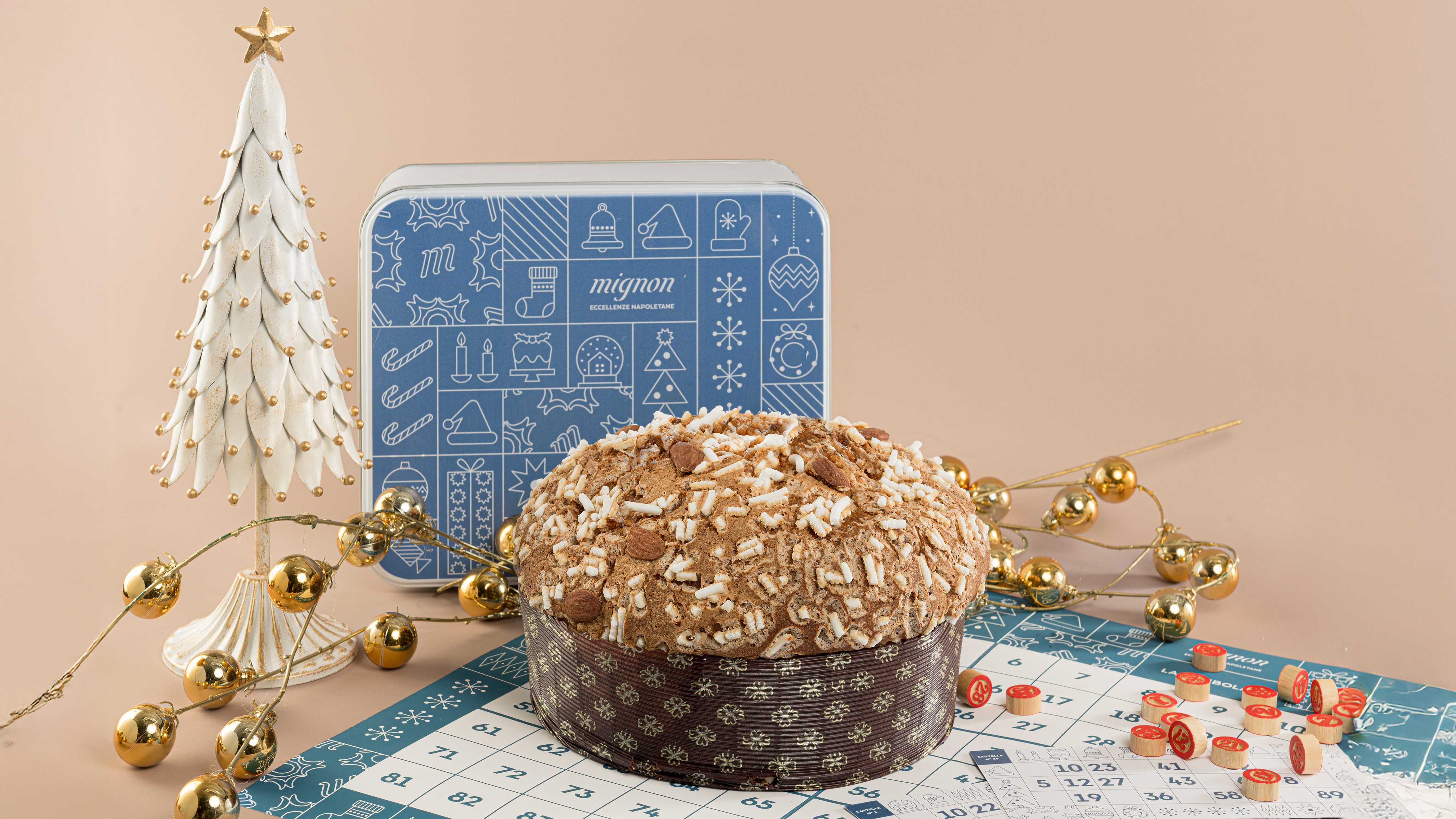 Una confezione speciale celebra infine uno dei simboli più amati del Natale partenopeo: la Tombola Napoletana. All’interno della scatola in latta, oltre al Panettone Classico, c’è il tradizionale gioco da tavola, quello che in ogni casa accompagna le feste. La tombola, nata a Napoli nel XVIII secolo come gioco “domestico” alternativo al lotto, è oggi un rituale collettivo che scandisce le serate natalizie: un momento di convivialità e tradizione che Mignon reinterpreta per farne un’idea regalo.