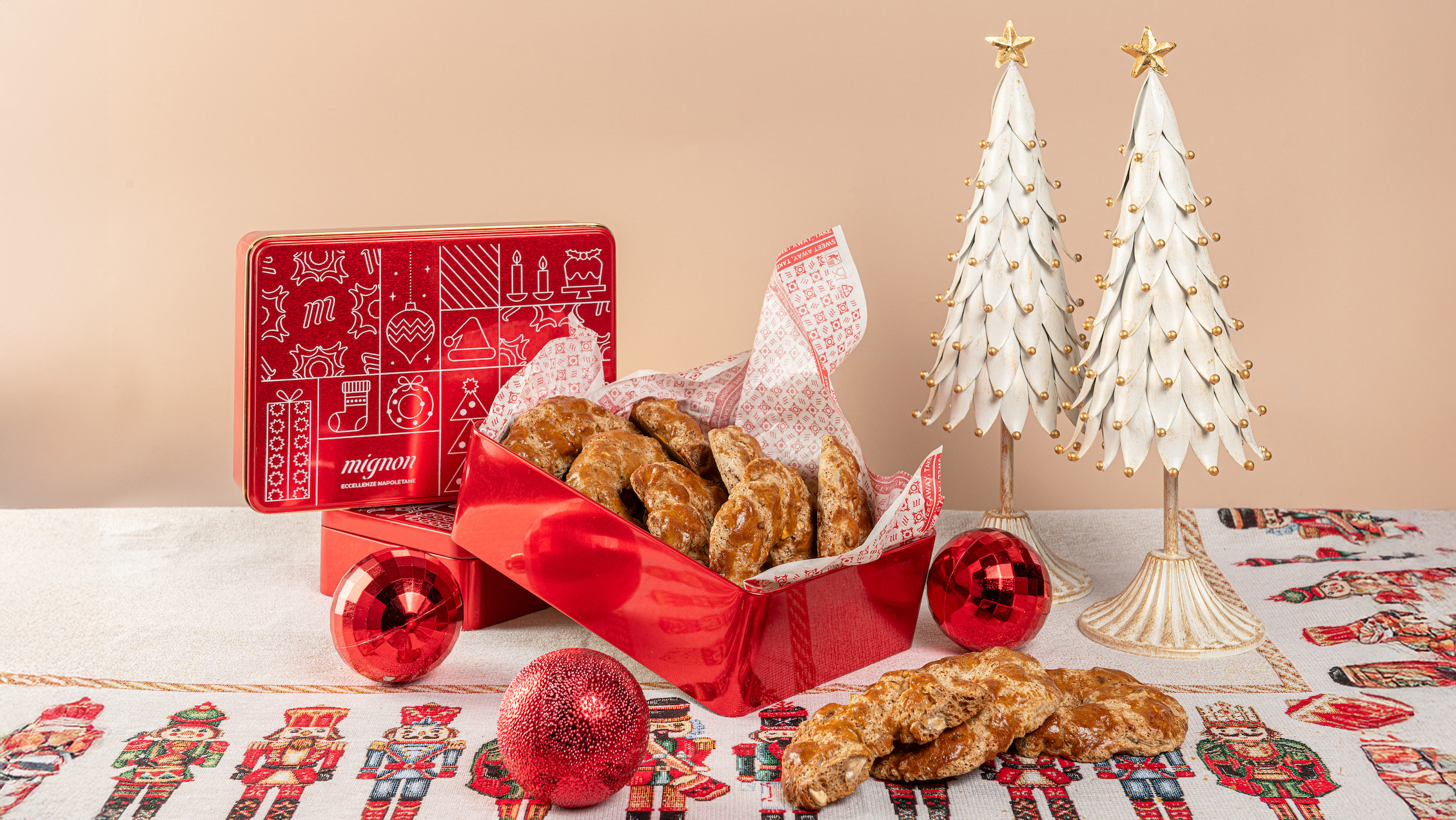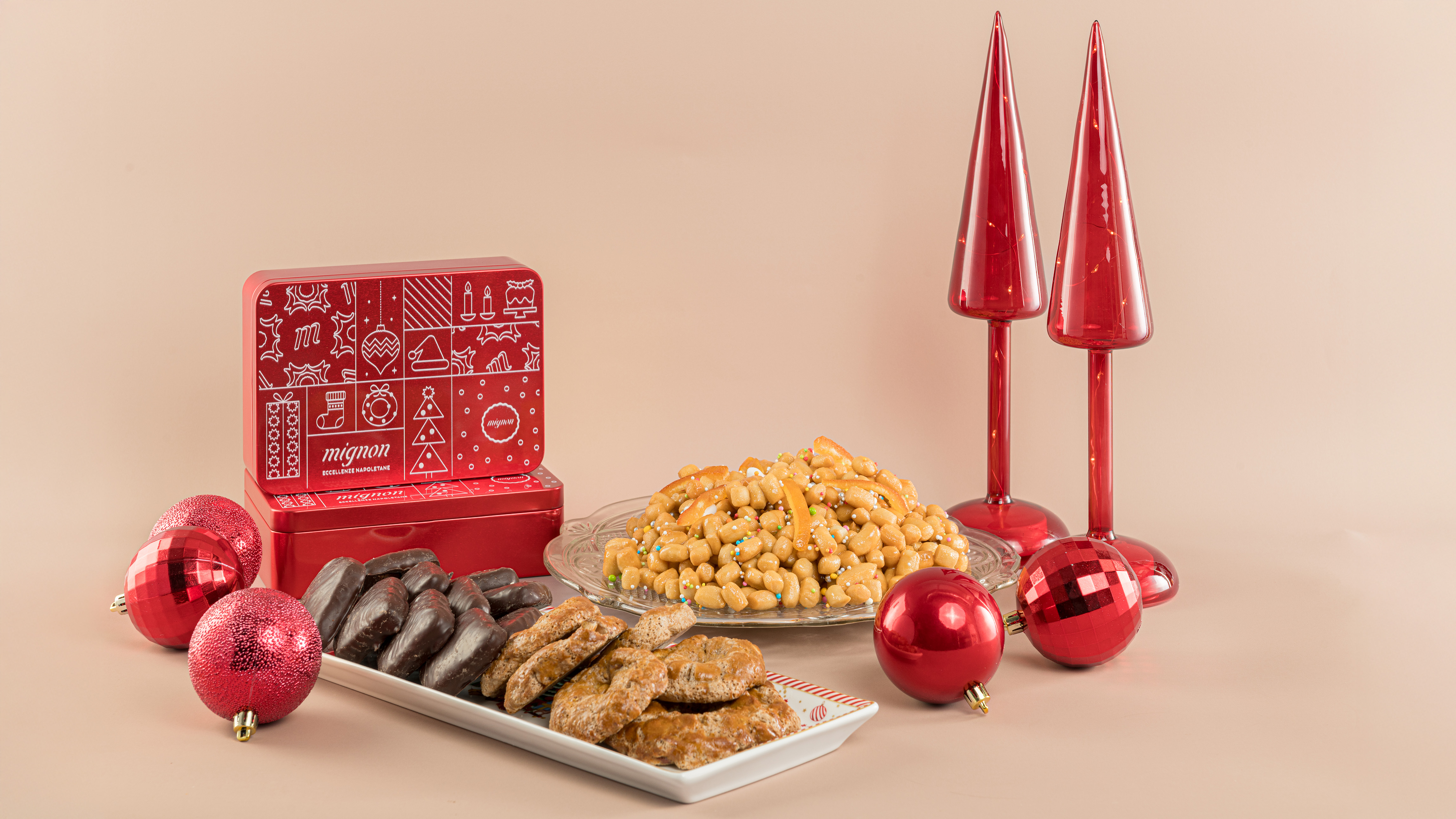 Oltre ai panettoni, la collezione natalizia Mignon accoglie i grandi classici della pasticceria partenopea, simboli di un Natale fatto di famiglia, calore e condivisione. Gli struffoli, piccole perle di pasta dolce fritte e immerse nel miele, raccontano l’essenza stessa della festa: profumati con scorze d’arancia e cedro, decorati con confettini colorati e frutta candita, sono un inno alla gioia e alla convivialità. Ogni pallina unita alle altre dal miele rappresenta i legami che tengono insieme la famiglia, in un dolce che da secoli è sinonimo di buon auspicio e abbondanza.