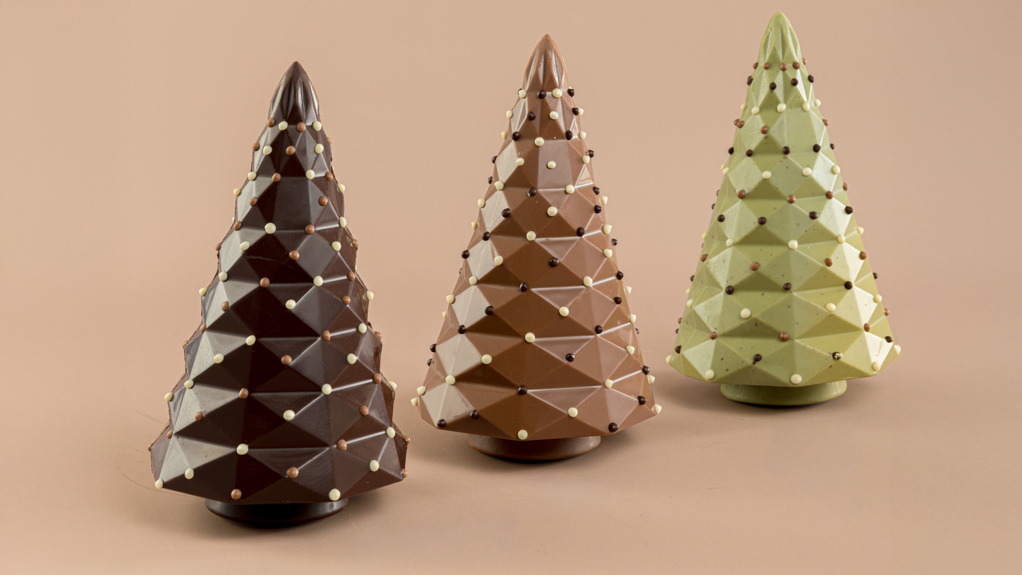 A completare la proposta, i raffinati alberi di cioccolato – fondente, bianco o al pistacchio – pensati come dono o come elegante centrotavola: una celebrazione del piacere e della bellezza, secondo la più autentica arte dolciaria napoletana.