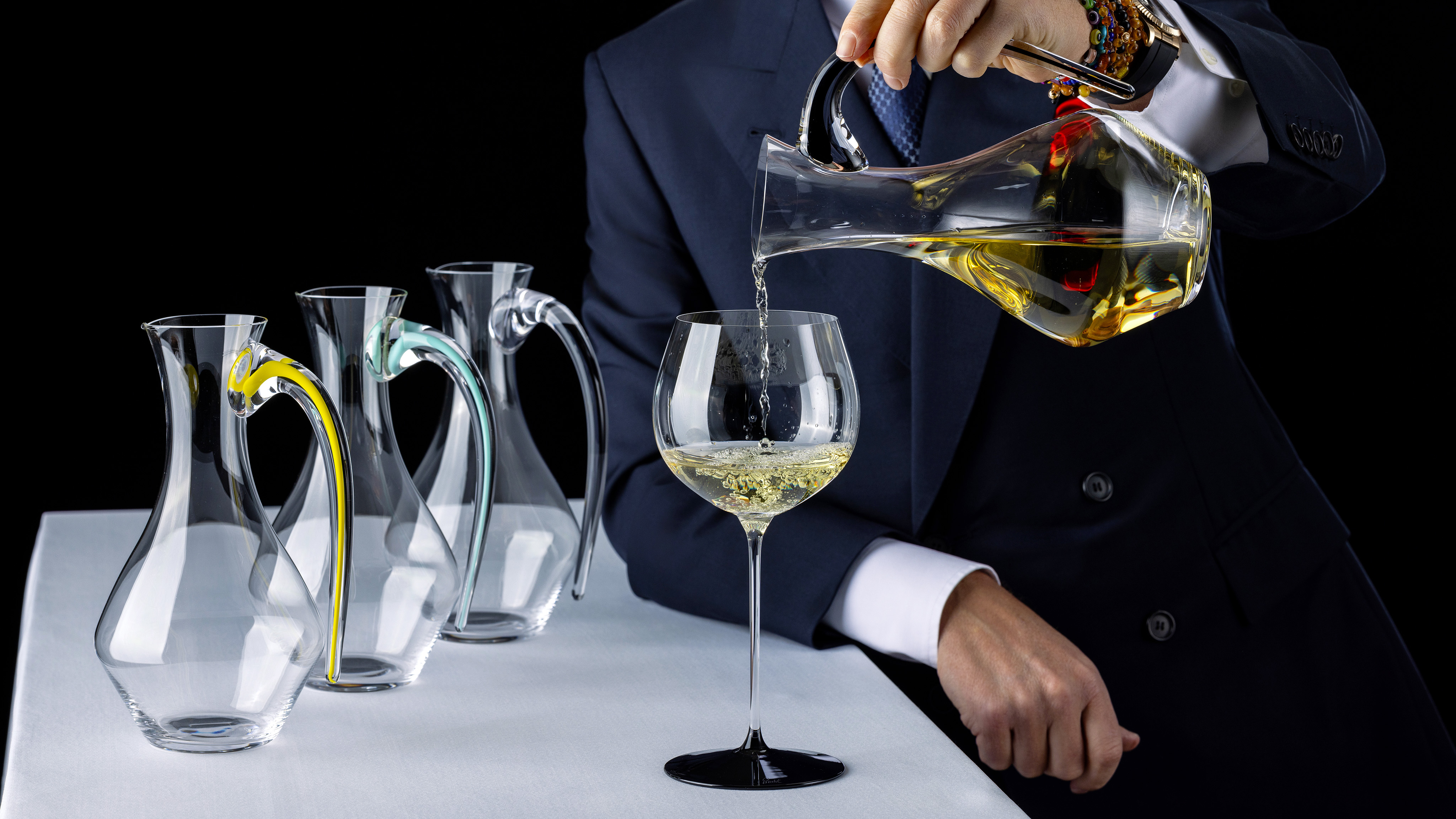 Nel 2025 l’iconico Decanter Amadeo si è rinnovato con una collezione dedicata ai colori delle bandiere del mondo, che ne percorrono con eleganza la silhouette interna. Un omaggio all’universalità del gusto e della convivialità, con tonalità che vogliono celebrare anche le culture enologiche più amate, inclusa quella italiana, con il suo inconfondibile tricolore.
